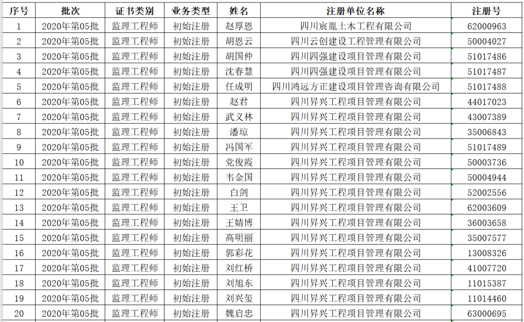 4月13日,住房城乡建设厅发布关于领取2020年注册监理工程师第5批初始注册证书的通知。2020年注册监理工程师第5批初始注册人员名单及领取要求如下: